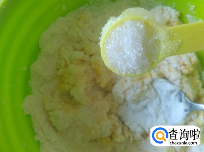 再加适量的白糖揉搓成面团。
