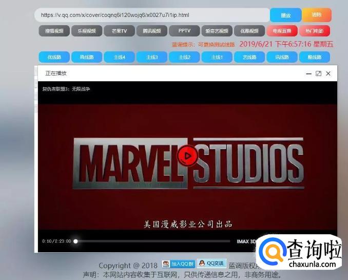 只需将视频网址复制到蓝调网即可解析,支持多线路