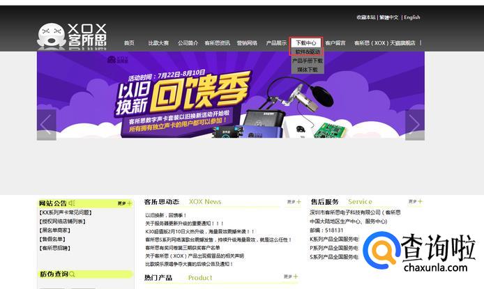 首先去客所思的官网下载一个声卡驱动http://www.kesuosi.com.cn/Admin/XOXChina.html。