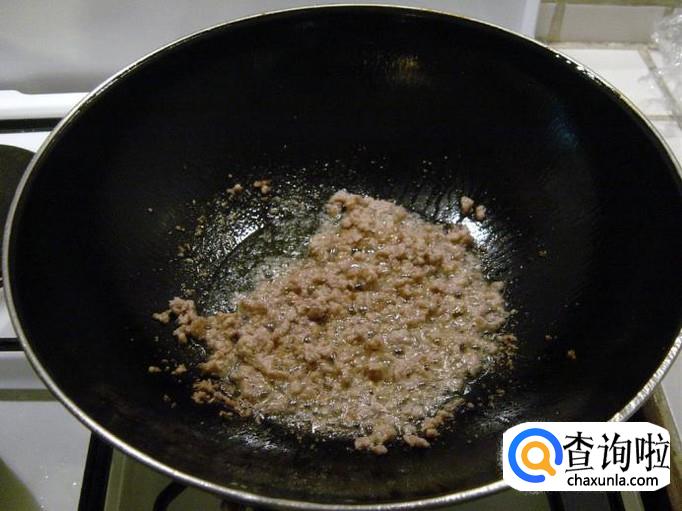 之后放入花椒粉,甜面酱和豆瓣酱调味,一直翻炒直至水份炒干。