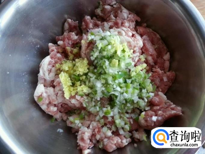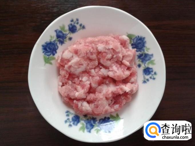 首先,将猪肉切成碎末备用,将葱姜蒜切碎备用。