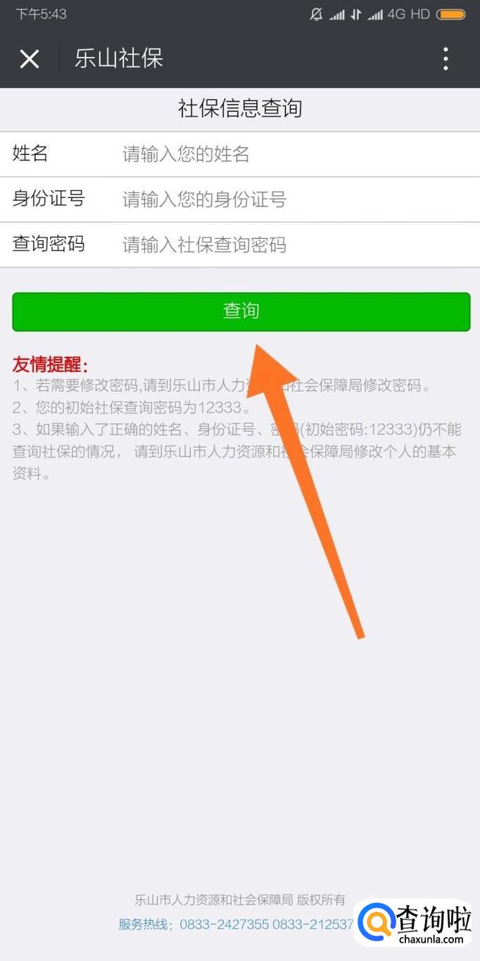 最后输入我们的身份证号码和姓名,点击“查询”就能看到社保情况。