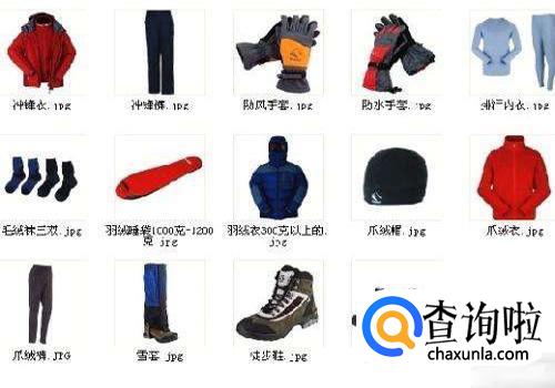 1、备份-代表需要准备双份2、高山靴-购买比平时所穿鞋大1-1.5码,因为你要穿厚袜子长时间重装也不需要对脚压缩太紧以免影响血液循环。3、安全带-注意自己的腰围小心买的过大或者过小4、菊绳-可以用牛尾代替,但是登山建议用菊绳5、抓结-为5-7mm的辅助绳打双鱼人结而得6、主锁-要保证有一把梨锁,锁的分类自己百度(有一把自动锁最好)。主锁分配为菊绳2把、下降器1把、上升器1把+散锁一把、备用1把。散锁可以用快挂锁代替。7、雪镜-请不要戴滑雪镜,因为他是凸面的,建议选购与骑行眼镜类似的雪镜(100%防紫外线)8、头灯-建议购买轻便、耐低温的头灯:国外的黑砖、攀索,国内的山力士、菲力克斯都可以选择。9、帐篷-帐篷主要起防风防雪作用,请尽量购买较轻便的帐篷,对保暖要求较低一些。因为保暖你得靠睡袋。10、睡袋-建议选择鹅绒11、防潮垫-请不要带充气垫、建议购买银搓带反热功能12、登山杖-必带,因为我们登山大部分是在徒步13、这里没罗列出雪套是因为登山穿的高山靴加冲锋裤,已经代替了雪套的功能。