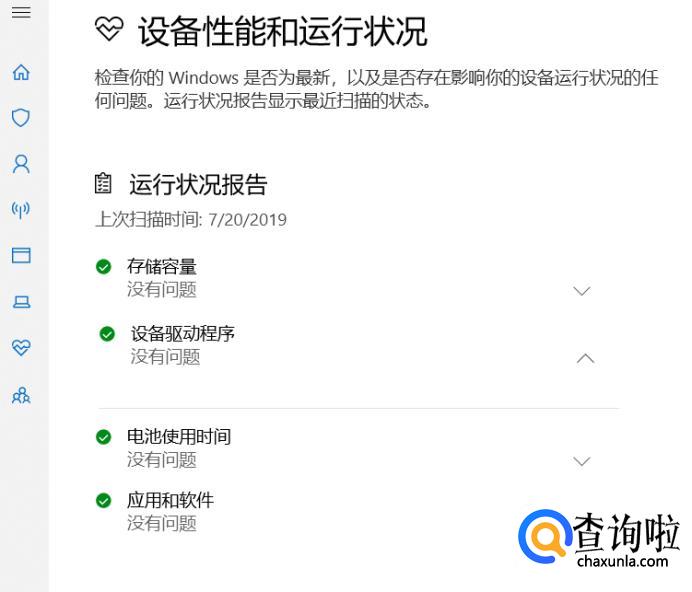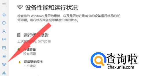选择左下角的心形图标按钮即可进入“设备性能和运行状况”页面。