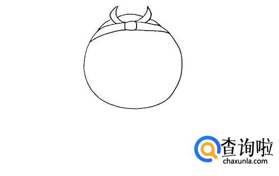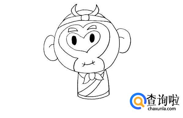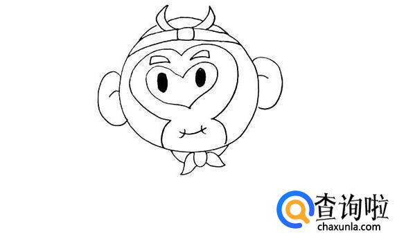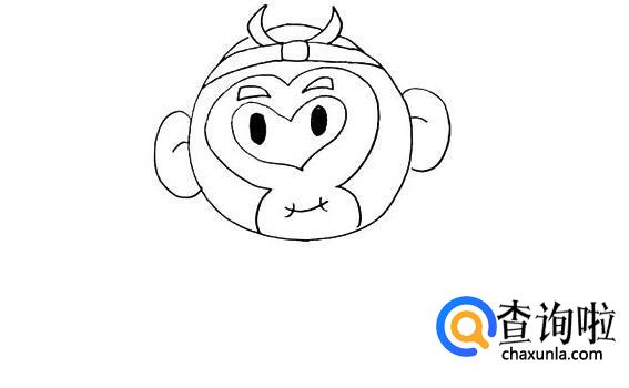 首先,画出一个大大的圆,这就是孙悟空的头了,头顶上戴着紧箍咒。