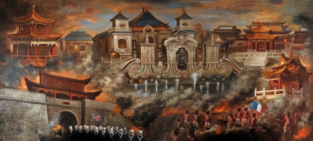 1860年10月7日,英法侵华头目闯进圆明园后,立即“协派英法委员各三人合议分派园内之珍物。”法军司令孟托邦当天即函告法外务大臣:“予命法国委员注意,先取在艺术及考古上最有价值之物品。予行将以法国极罕见之物由阁下以奉献皇帝陛下(拿破仑三世),而藏之于法国博物院。”英国司令格兰特也立刻“派军官竭力收集应属于英人之物件。”法英侵略军入园的第二天就不再能抵抗物品的诱惑力,军官和士兵们都成群打伙冲上前去抢劫园中的金银财宝和文化艺术珍品。