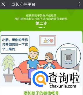 点击进入微信,关注官方的微信公众号[成长守护平台]。