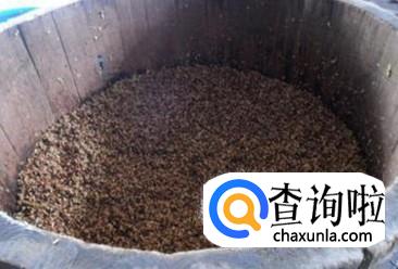 等高粱蒸熟以后就加入我们准备好的麴搅拌,然后使其发酵,一般都要密封保存。