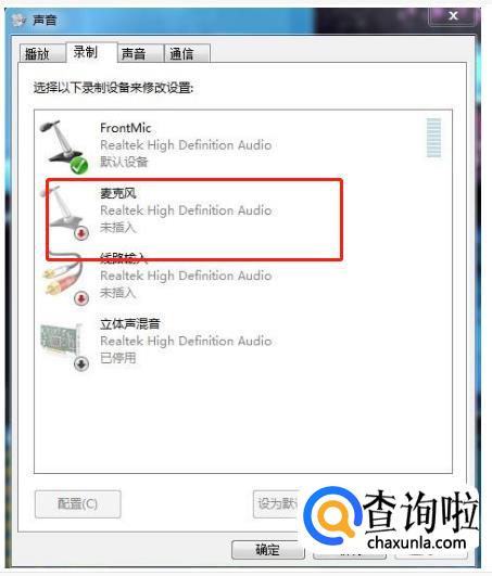 点击“麦克风”,然后点击:“确定”,可以看到在Realtek高清晰音频管理器中,已经显示了设备麦克风。