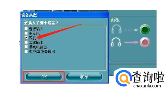 在弹出的该设备应将被验证为的对话框中,可以看到插入的设备为:耳机而不是麦克风。