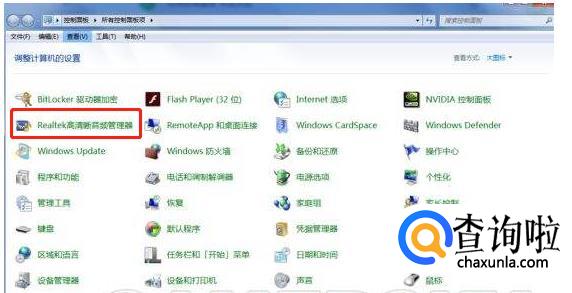 在控制面板中,我们将查看方式修改为“大图标”,选择“Realtek”——“高清晰音频管理器”,如下图所示。