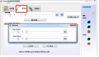 在Realtek高清晰音频管理器窗口,点击前面板的麦克风插口。