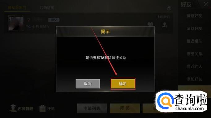 在提示窗口中点选“确定”,我们就能解除师徒关系了。