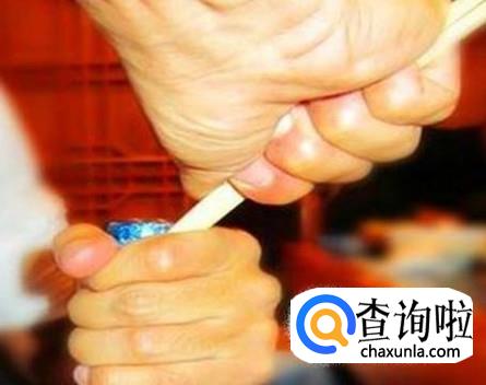 把筷子插进与瓶盖的缝隙中,以横着的手指为支撑点,用筷子当杠杆,右手使劲往下翘,瓶盖很快就被翘开了。
