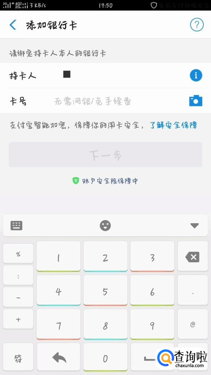 所添加的新的银行卡持卡人与支付宝实名认证的人要一致,填写相关信息,即可完成添加。