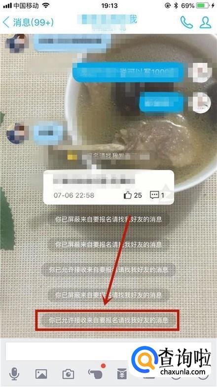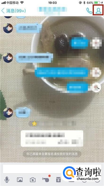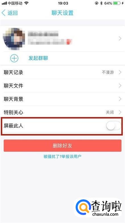 然后点击关闭屏蔽此人开关,如下图所示。