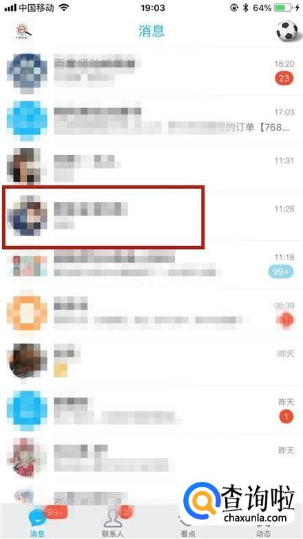 然后点击一个已经屏蔽了的好友,如下图所示。