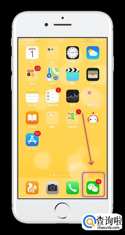 首先在我们的手机桌面找到微信并点击它,如下图所示。