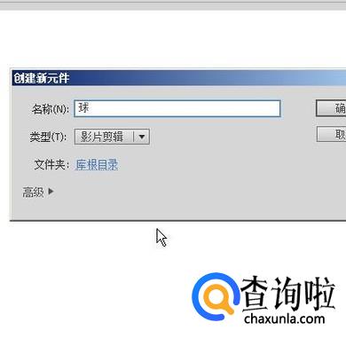 按下CTRL+F8;执行插入元件命令,弹出对话框,设置名称“球”,然后,点确定。