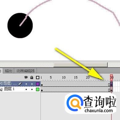 再选择图层1;鼠标点住舞台上的圆,把圆中心点移到引导路径的开始端点这里来。