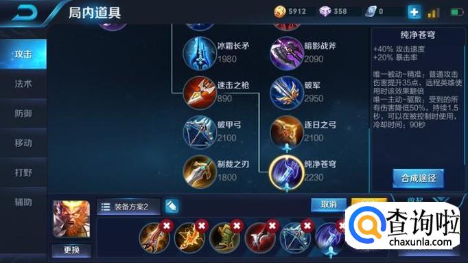 另一个要说的就是出装问题了,建议的出装为:无尽-电刀-隐忍之足-吸血之刃-破甲弓-纯净苍穹,这样能够很好的打出暴击