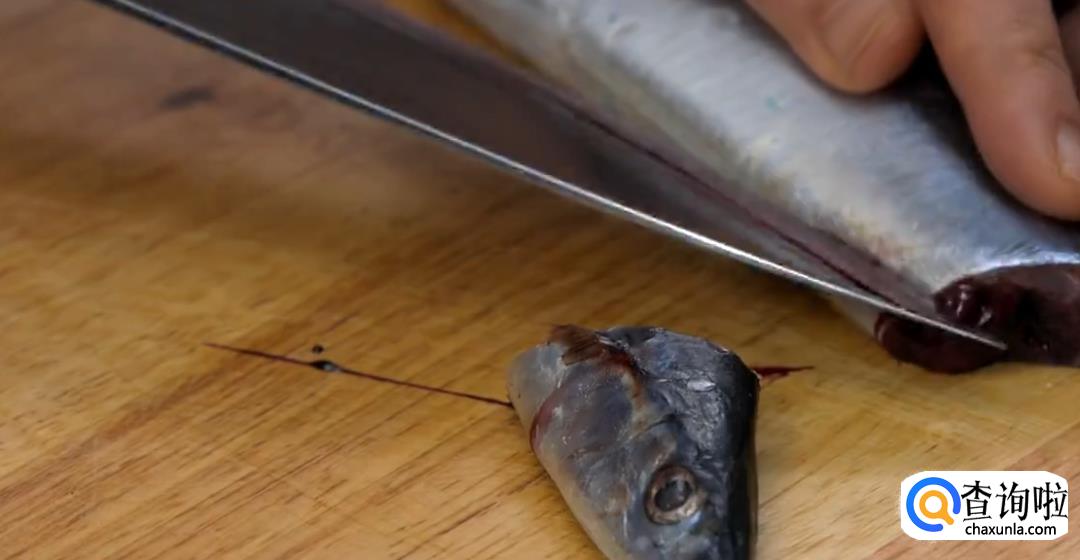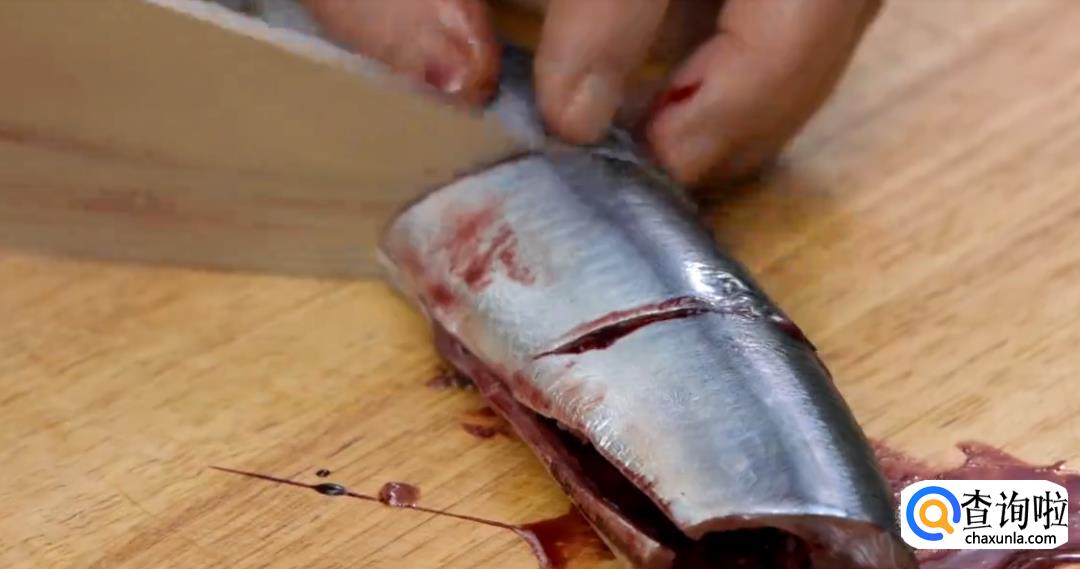 切去鱼头,去掉内脏和腹部的血线。将鱼切段。