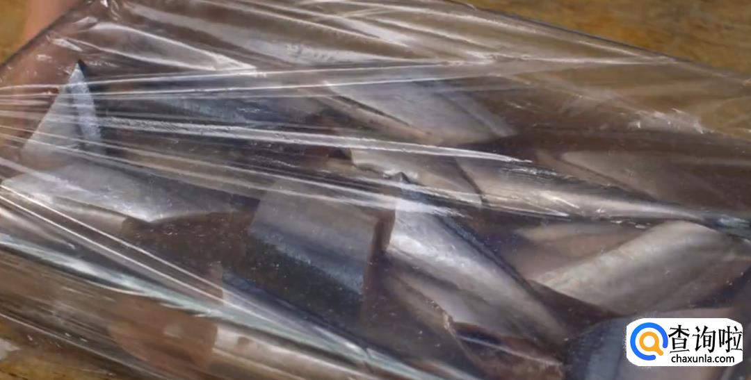 洗净后加入盐巴,清水进行腌制,蒙上保鲜膜,冷藏静置4小时。目的在于让鱼肉更加紧致。