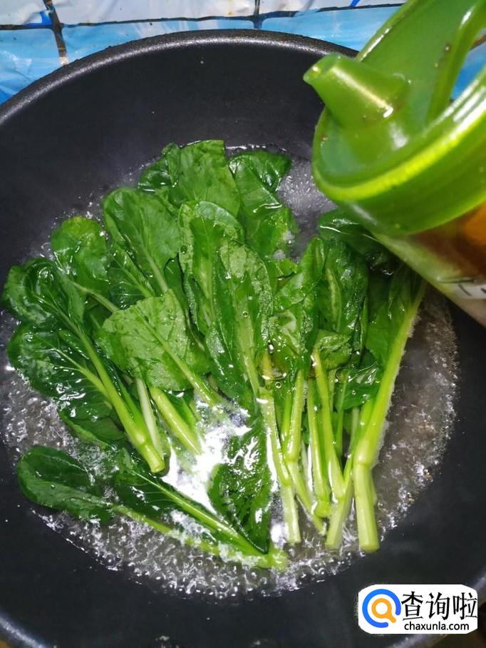 烧开后,趁热浇在菜心上面,搅拌均匀就可以吃了,真的太美味了,家里人都说好吃。