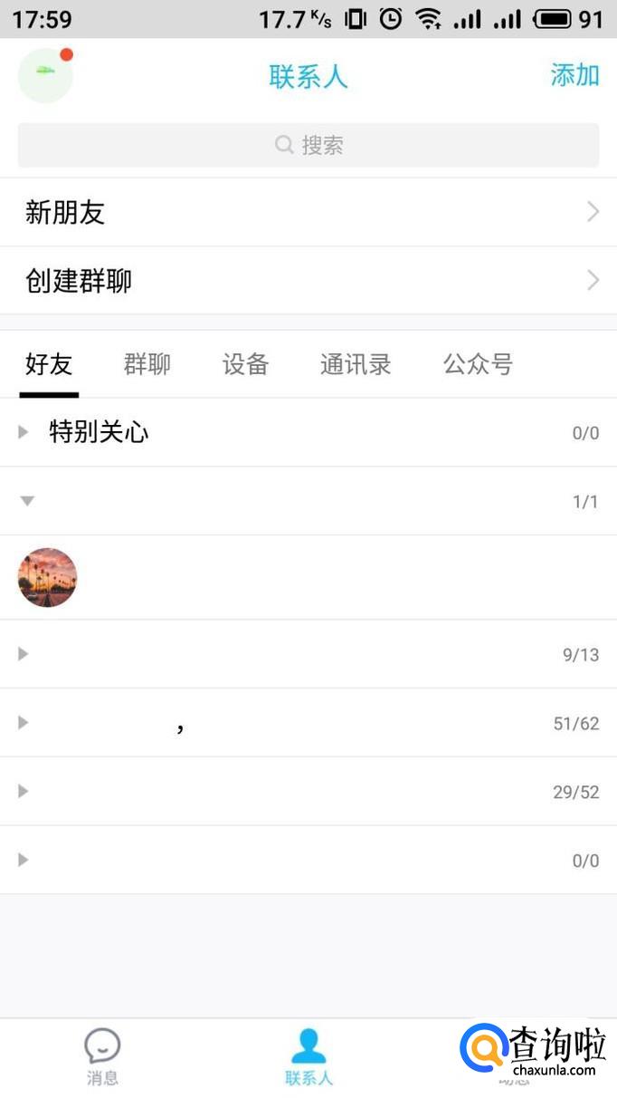 打开手机QQ进入联系人界面,点击想要查看空间的好友进入。