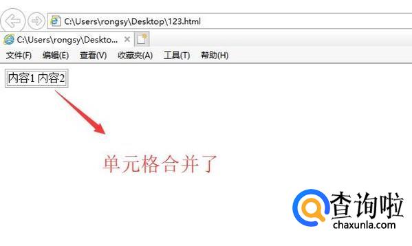 最后我们运行页面程序,你就会看到两个单元格的内容都合并到一个里面了,如下图所示