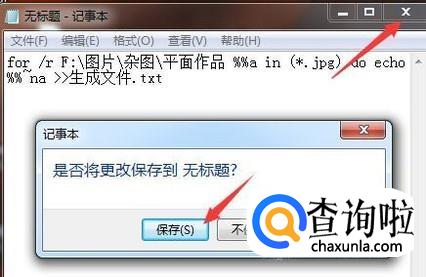 接下来点击关闭按钮,点击保存,在保存对话框中选择保存类型为所有文件,再输入文件名,文件名后加上“.bat”,也就是保存成批处理文件。