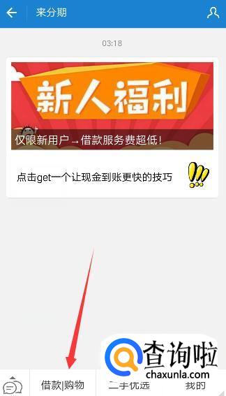 授权成功后,返回来分期服务窗口,点击“借款/商城”,进入来分期商城