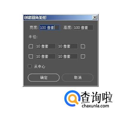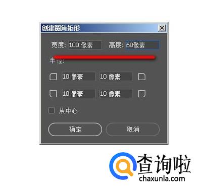 假设要画出固定尺寸的圆角矩形,我们要这样操作:鼠标在画布上,点击一下。弹出创建圆角矩形对话框。