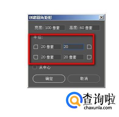 再在“半径”这里;分别设置圆角的大小;比如设置为20像素