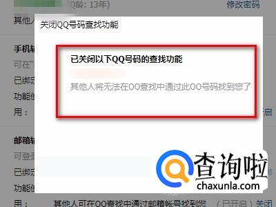 这样操作完成,别人就不能够通过qq号码查找到我们的QQ号了。