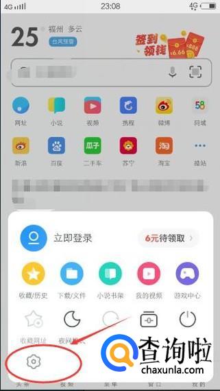 然后在浏览器主界面走点击下方的【菜单】图标,如下图所示: