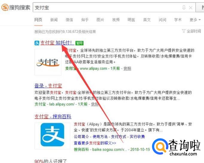 进入之后,搜索“支付宝”,点击并进入,如图所示。