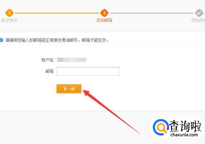 进入之后,将邮箱填写在图示位置,点击“下一步”即可完成添加,如图所示。