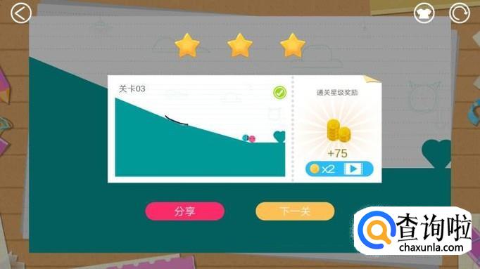 过关后会得到不同数量的金币,如下图。