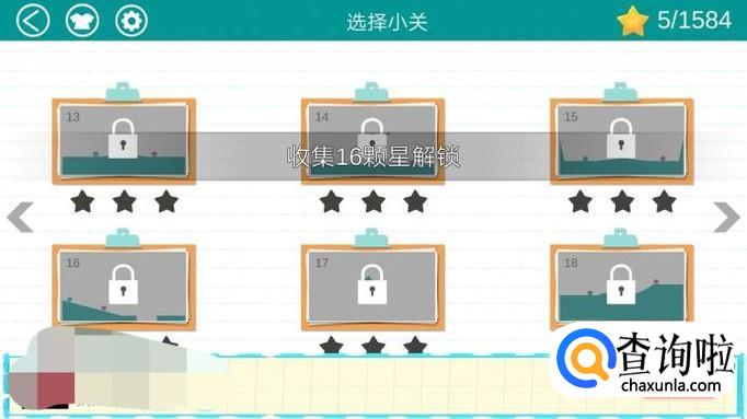 12 关以后就需要积攒 通关星星来解锁,比如这个13关就需要16颗星星解锁。