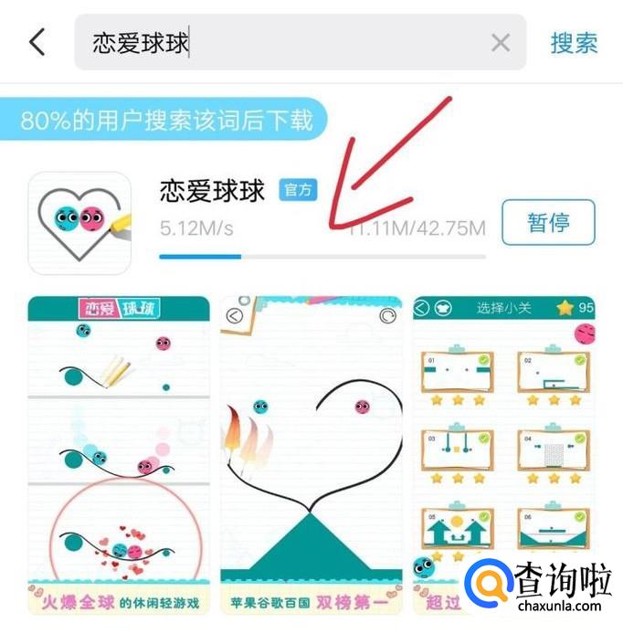在手机应用商店搜索并下载安装游戏,如下图。