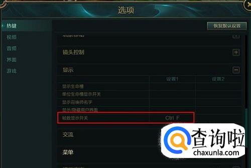 当然我们也可以设置自己喜欢的键来打开FPS显示。