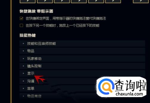 在热键里面再找到显示选项,点击打开。