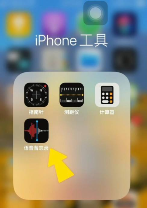 2、如果是苹果手机,需要打开工具文件夹。找到语音备忘录,点击打开。同样,按下底部的圆圈就可以开始录音了。