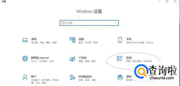 进入Windows设置界面,选择应用并点击