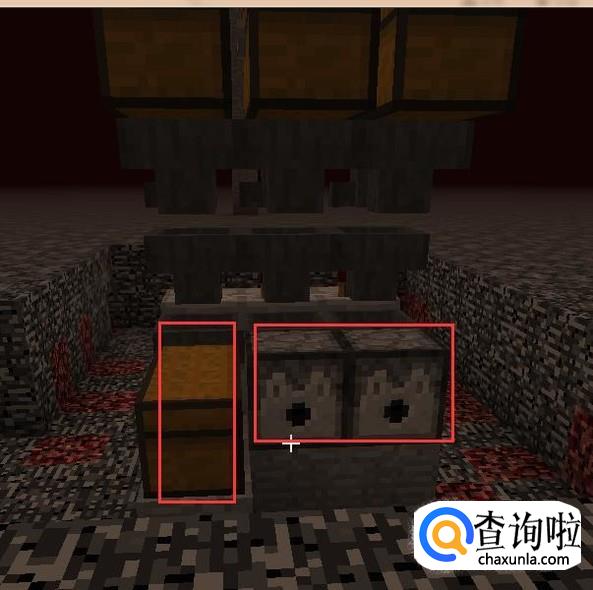 首先我们做好猪人塔后,在每个箱子的下面再放一个向外的漏斗。