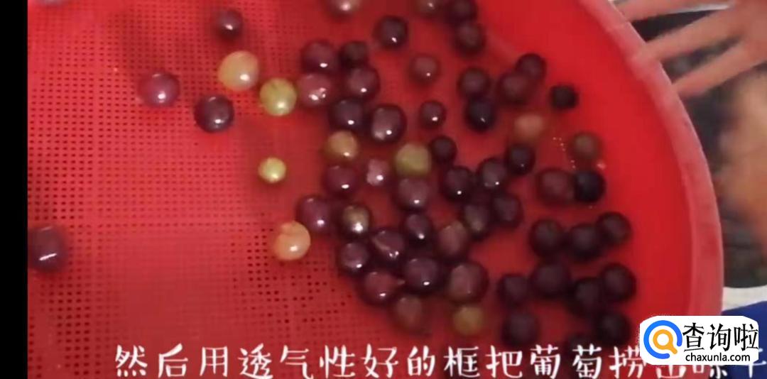 然后用透气性好的框把葡萄捞出晾干,一定要把葡萄表面的水晾干,否则会影响后期葡萄酒的发酵和酒的口感,放置在通风的地方晾干。