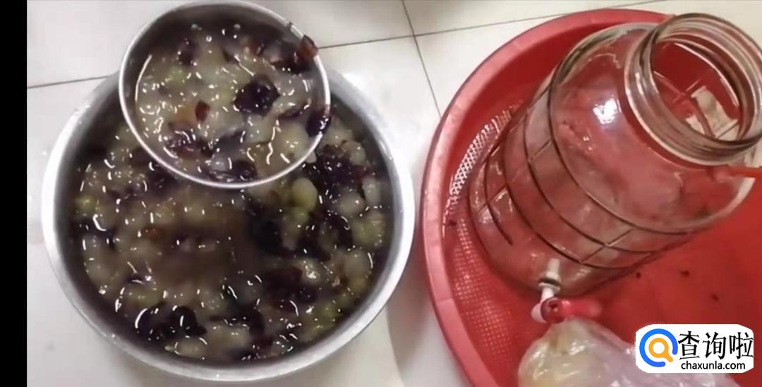等放置一个月后,就可以用纱布将酒水和残渣分离出来,要把葡萄籽,葡萄皮,还有发了酵的果肉都过滤掉,这就叫滤渣。过滤两、三次后就可以饮用了。