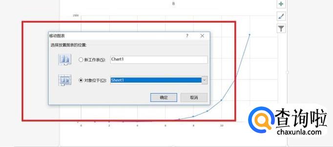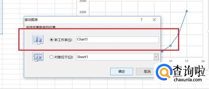 然后这时就会弹出一个移动图片的选择框,这里我们选择上方的“新工作表”就可以了,然后再点击确定,我们就将嵌入式图表转换为工作表图表啦。