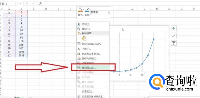 转换回来也很简单,就是我们再右键点击工作表图表的边框,然后再点“移动图表”,不过这里我们就要选择下一栏“对象位于”了,然后再点确定。